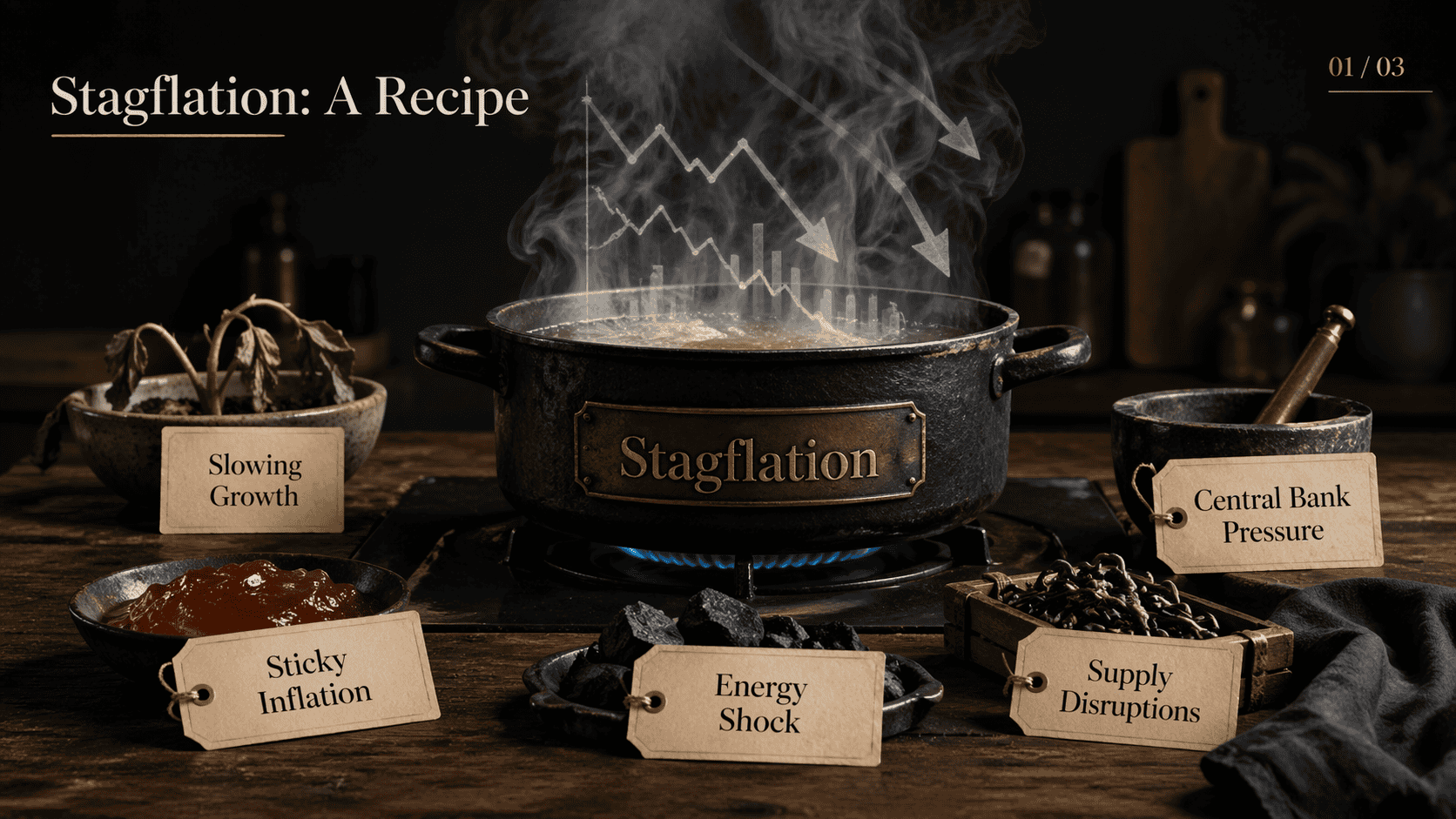 That combination creates a classic stagflationary setup: