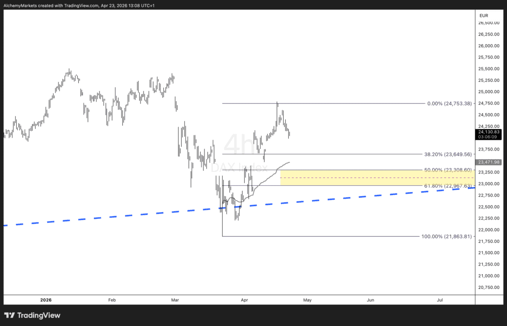 From a tactical perspective, the DAX is approaching a critical area that could define near-term direction.