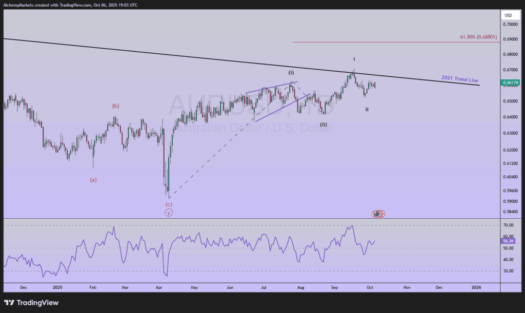- Trend Bias: The AUD/USD pair is rallying within a larger uptrend.