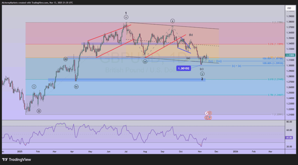 If the 1.3010 support low is broken, then wave ‘2’ is extending lower.