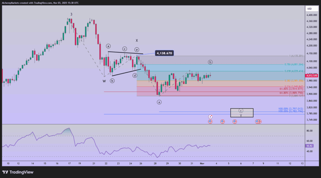 If gold prices push above $4,139, then we’ll consider an alternative scenario of a medium-term bottom last week.