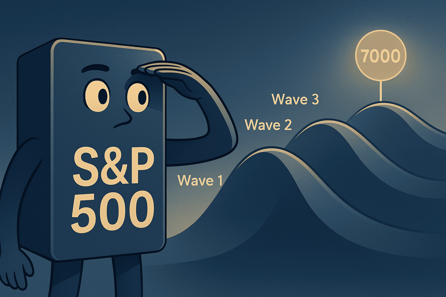 Once the wave ((iii)) top is in place, then wave ((iv)) likely travels to 6,300-6,650.