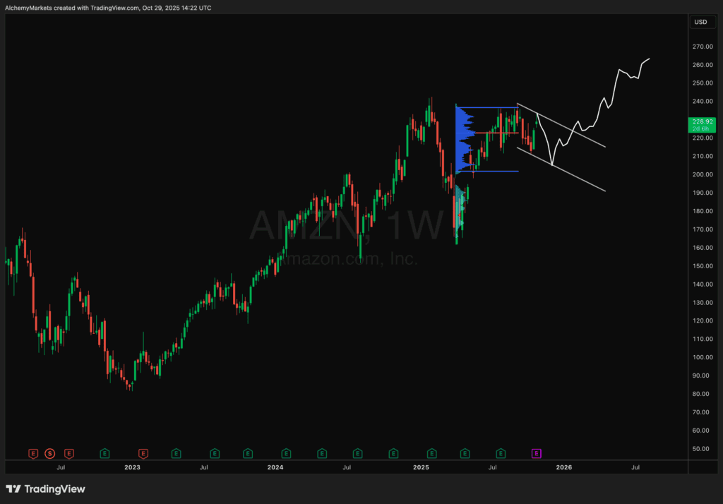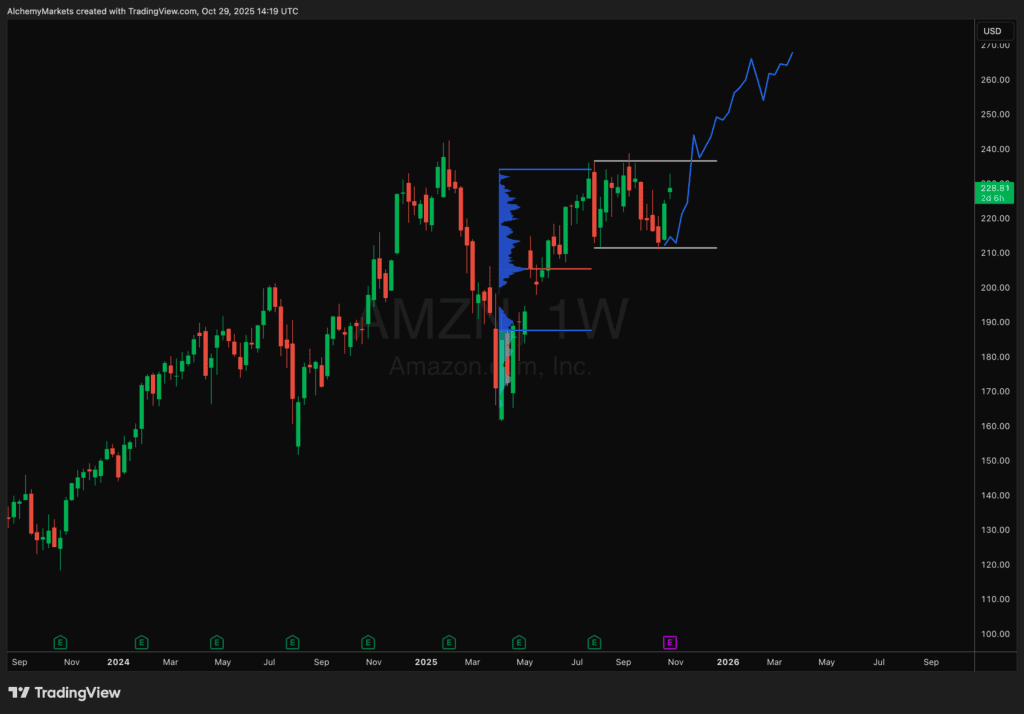 This kind of result might not excite the Street, leading to a short-term pullback—potentially toward your Point of Control (POC) from the previous leg. But the longer-term structure remains bullish. Investors could view any dip as a buying opportunity once Amazon reaffirms strong fundamentals into the holiday season.