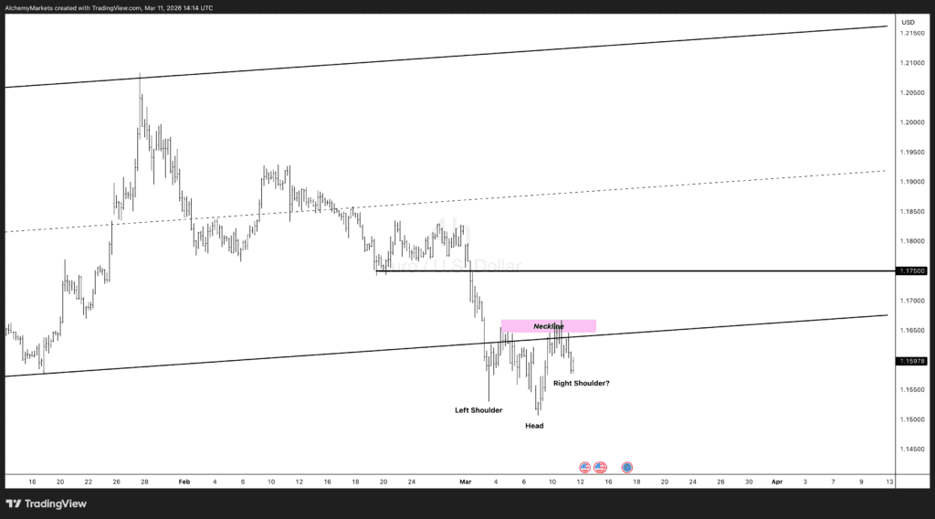 From a technical perspective, EUR/USD appears to be forming an inverse head-and-shoulders pattern, a classic bullish reversal structure.