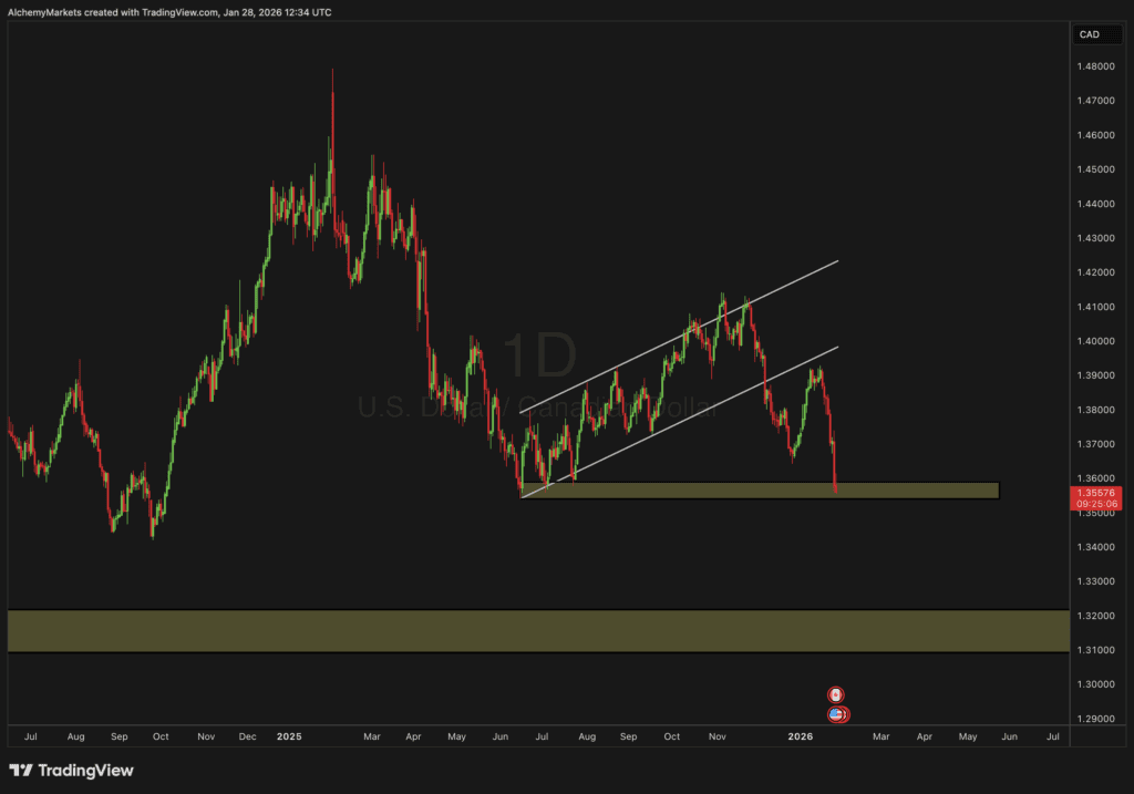 - RSI: Deeply oversold (25), suggesting a potential pause before further downside if BoC guidance reinforces CAD strength.