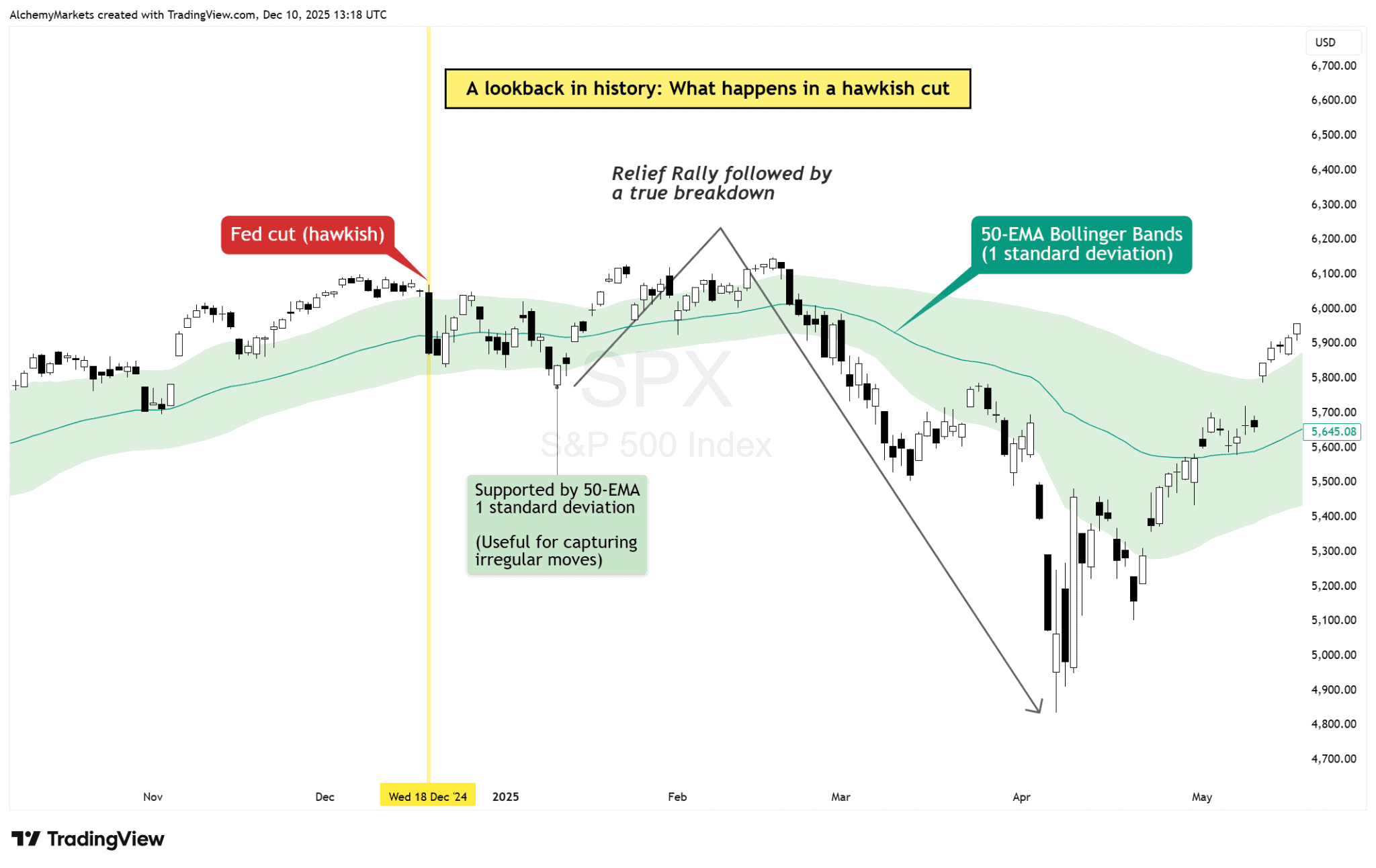 Traders learned this the hard way in December 2024 when a cut lifted the dollar and spiked yields… the S&P 500 sold off as Powell emphasised caution. This demonstrates that tone can hit equities even when rates go down, as investors lose confidence in the markets and derisks.