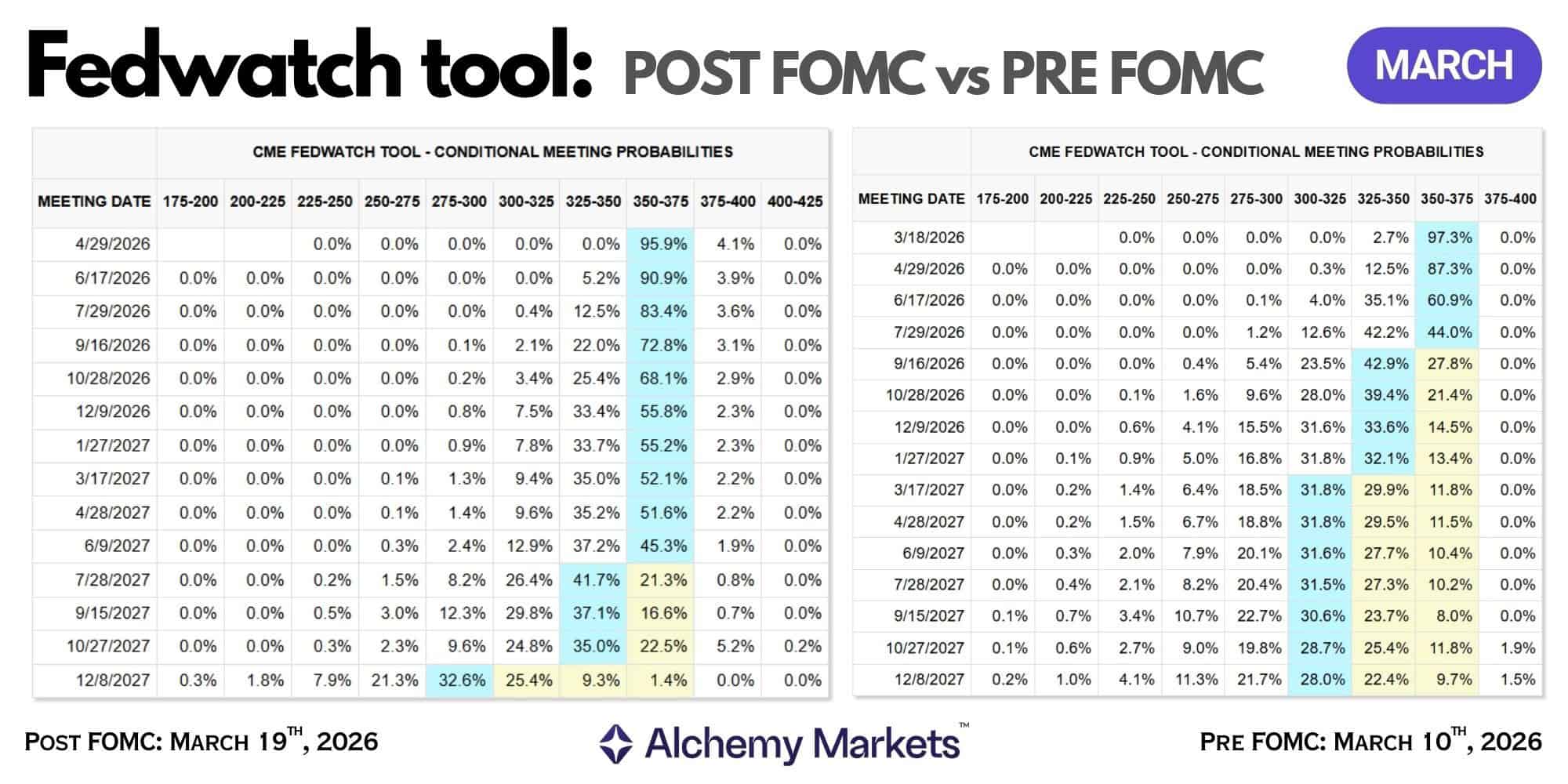 Observe how expectations have shifted from pre-FOMC to post-FOMC pricing: