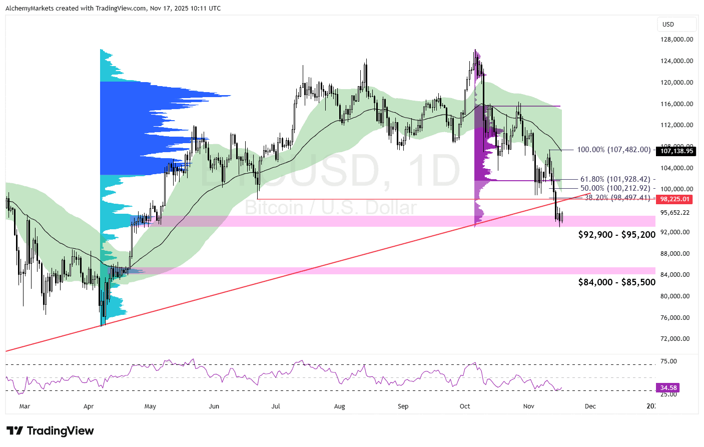 Bitcoin has broken down from two major supports formed in 2024 – 2025:
