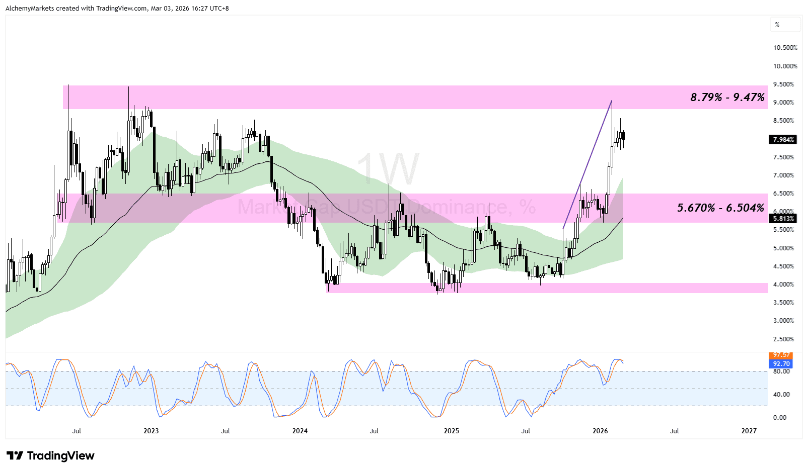 Last but not least, the USDT Dominance chart (USDT.D) has tapped into a major resistance zone.