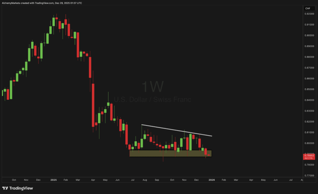 Macro conditions align neatly with the technical picture. With the Swiss National Bank largely on hold and global risk sentiment stable, CHF strength is more likely to emerge through USD weakness rather than domestic tightening. In risk-neutral to mildly risk-on conditions, USD/CHF downside becomes increasingly plausible.