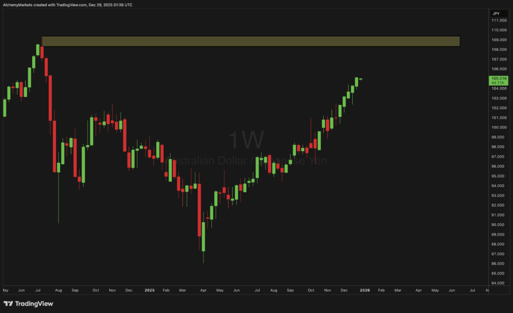 Macro conditions quietly support this outlook. Yield differentials remain favourable, and as long as global risk appetite holds, AUD/JPY is likely to remain bid.
